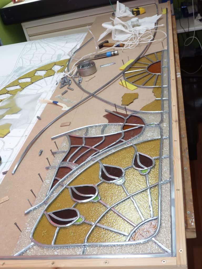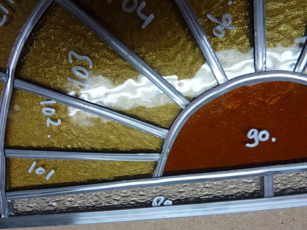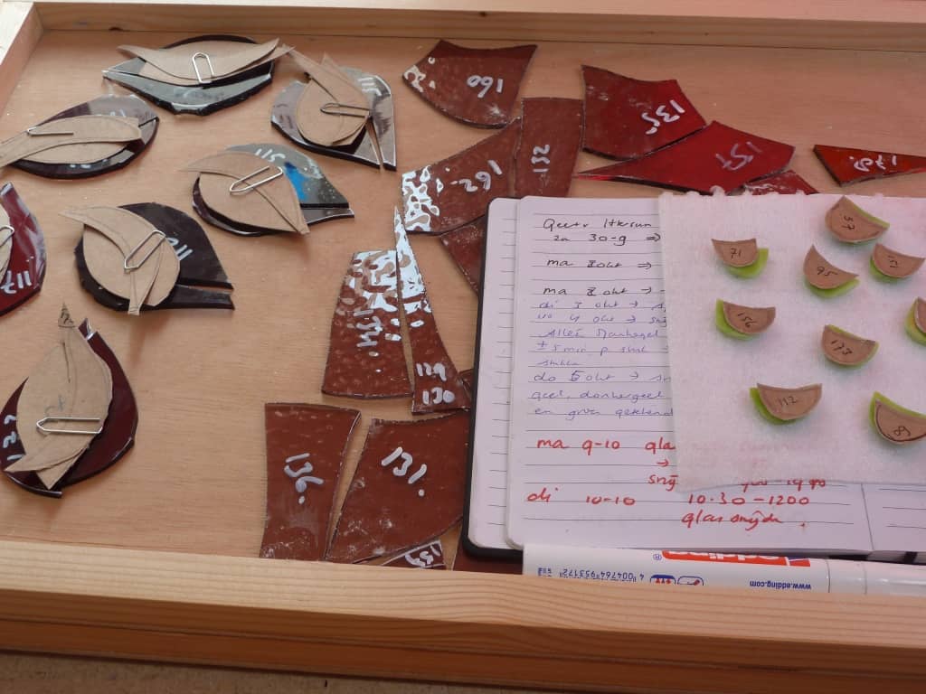 Materiaal: Mondgeblazen antiekglas, structuurglas in diverse kleuren.