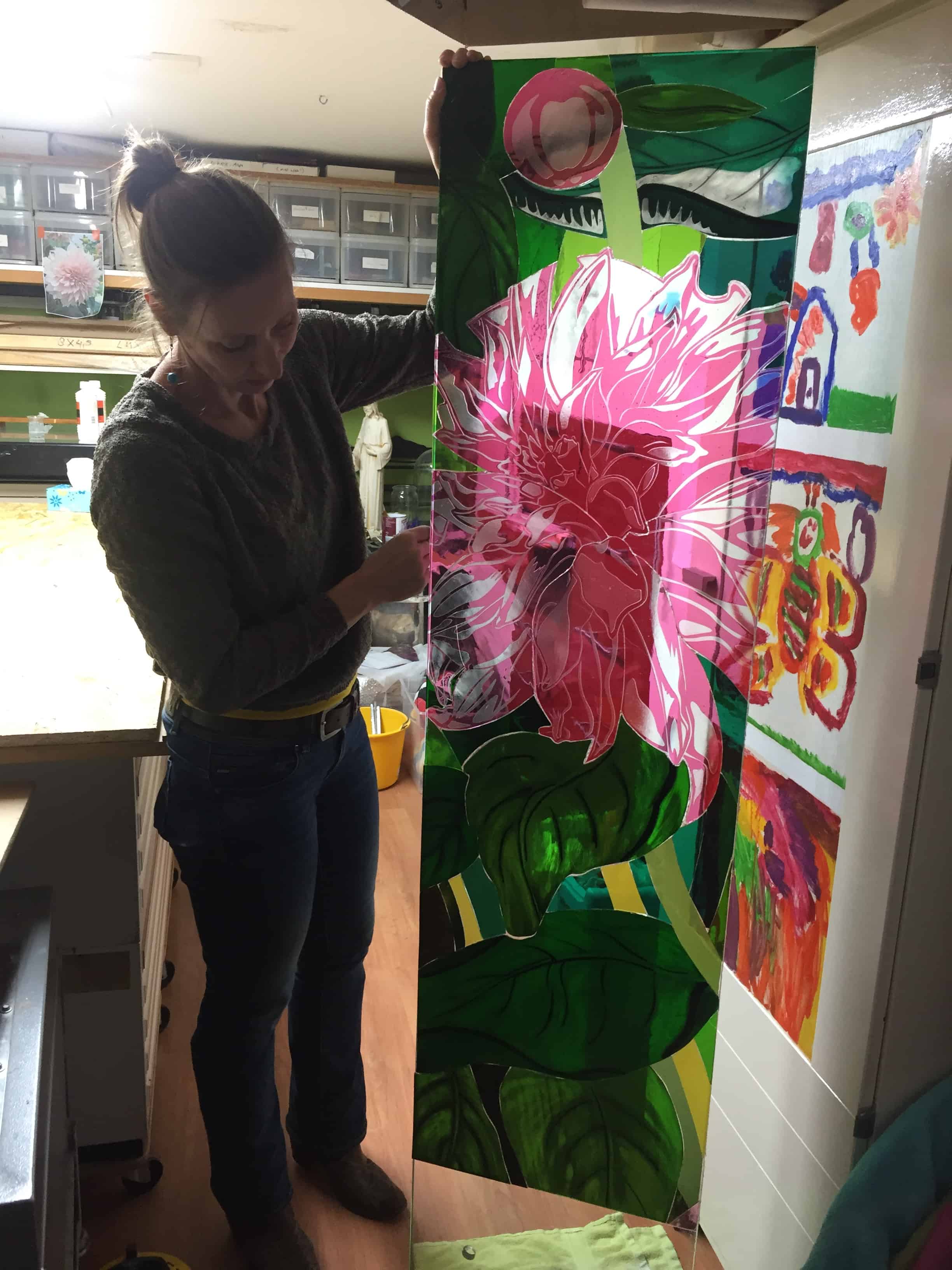 Voor deze serie steles is gebruik gemaakt van de appliqué-techniek. Dit is de volgende in de serie Tu Ý Yo. De symboliek van kleur, licht en de naderende zomer verwoord in bloemen. Jij en ik. Wie zijn dat? Leven = Liefde.